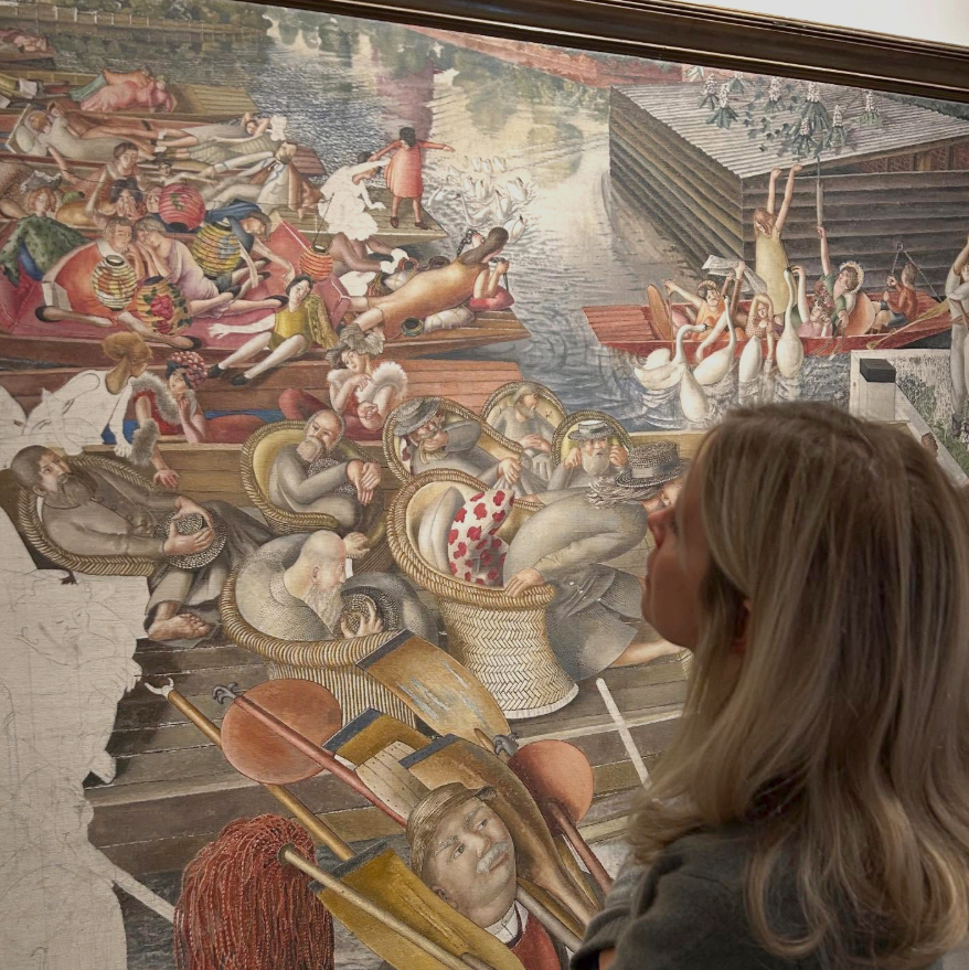 An extraordinary opportunity to view Christ Preaching at Cookham Regatta at eye-level has arrived at the Stanley Spencer Gallery, following its repositioning in the latest exhibition.